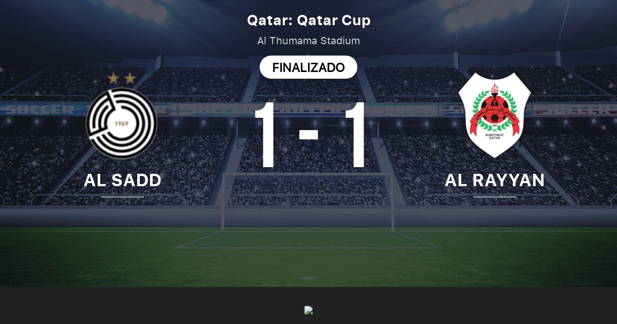 Al término de los 90 reglamentarios el partido entre Al-Rayyan y Al-Sadd continúa empatado por la final de la Copa del Emir. En cuanto al resultado desafortunadamente su equipo Al-Rayyan se quedó con las manos vacías tras caer en los penaltis con el Al-Sadd de Xavi Hernández. 2 days agoAl-Rayyan vs.